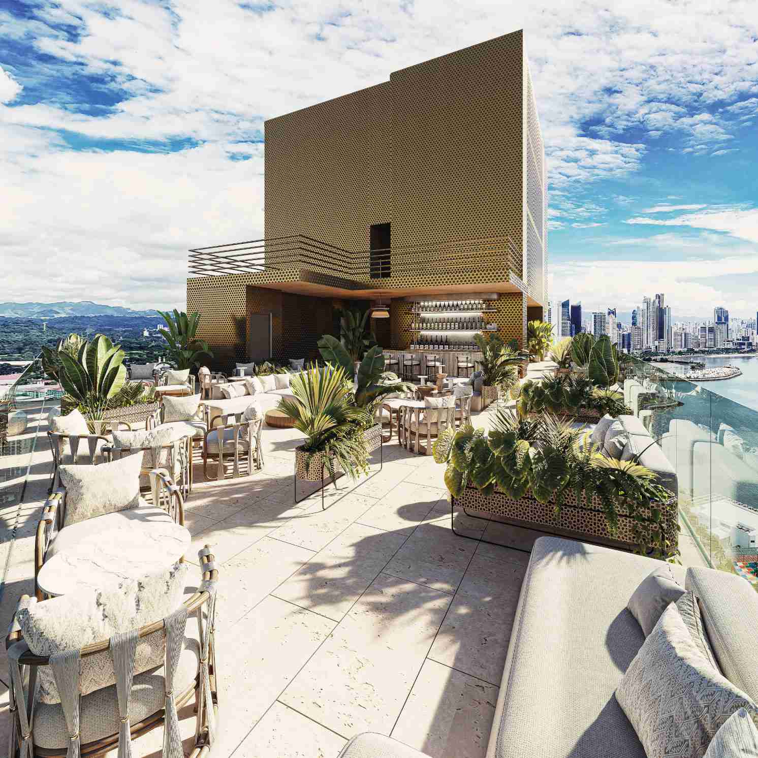 En la cúspide del edificio, te esperan experiencias gastronómicas inigualables. Los restaurantes y el rooftop ofrecen vistas panorámicas de la ciudad y el océano, convirtiendo cada cena o evento social en una ocasión especial. Es el lugar ideal para impresionar a tus invitados o simplemente disfrutar de una noche mágica.