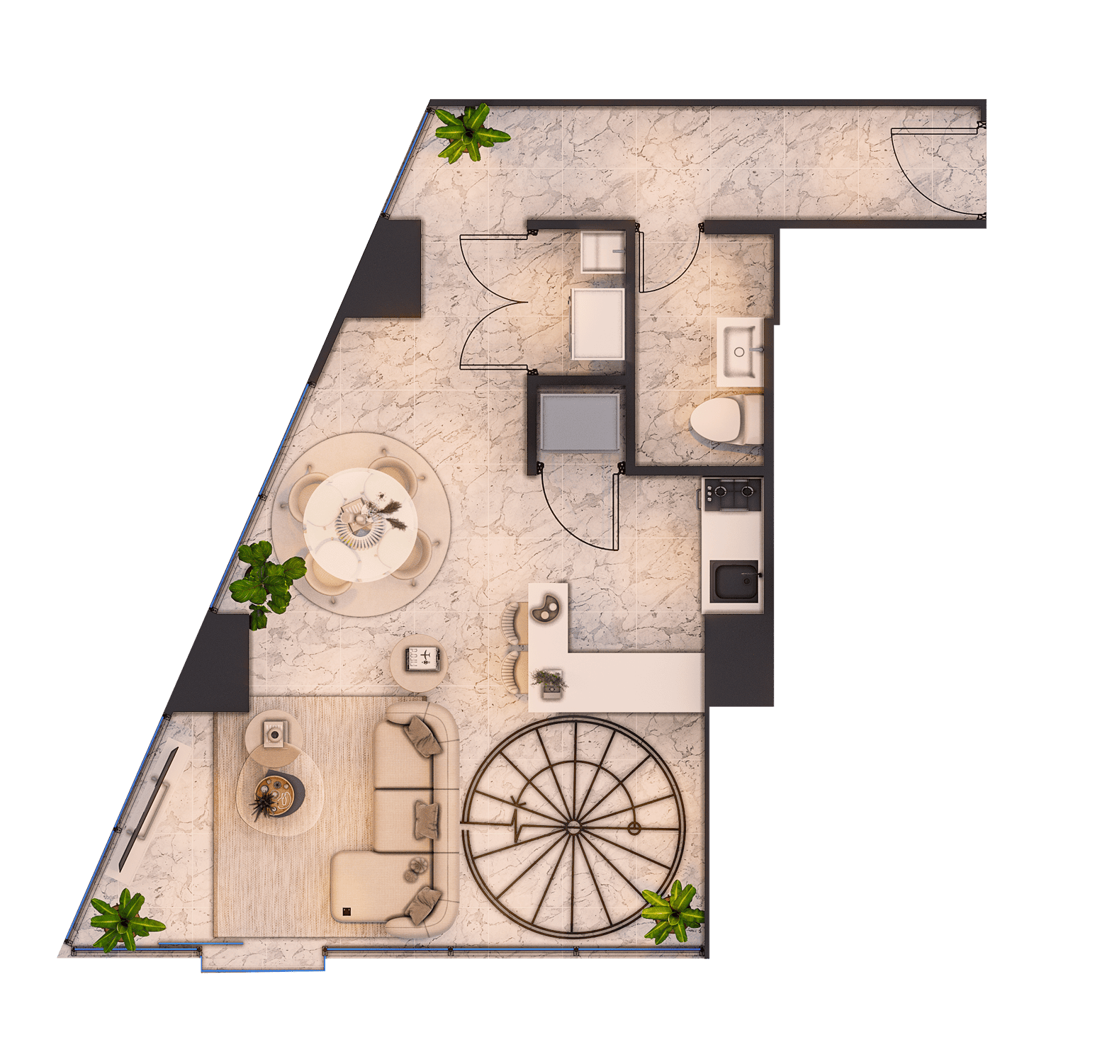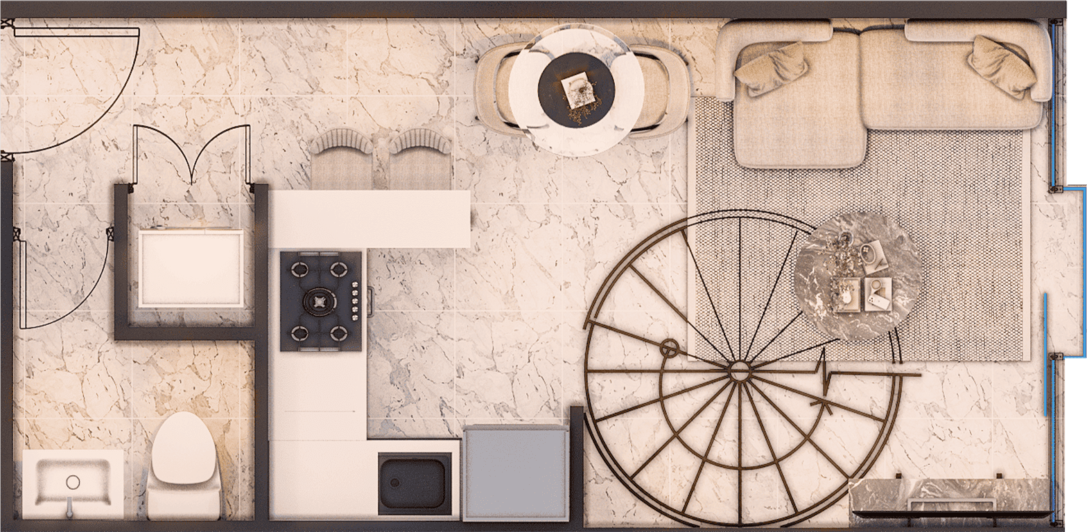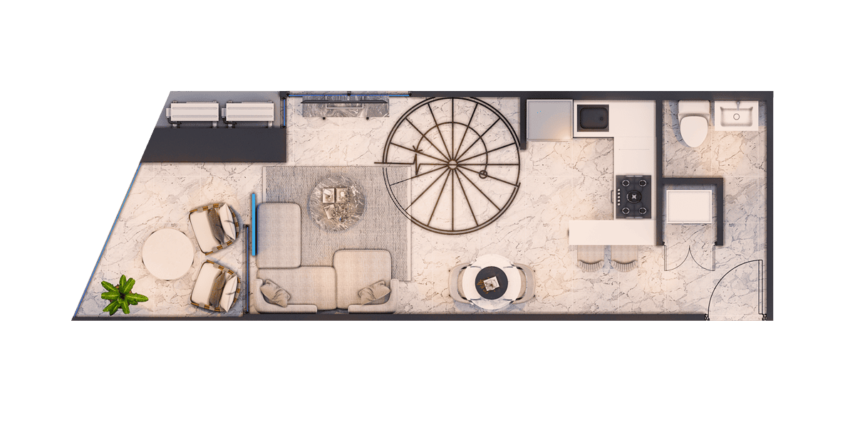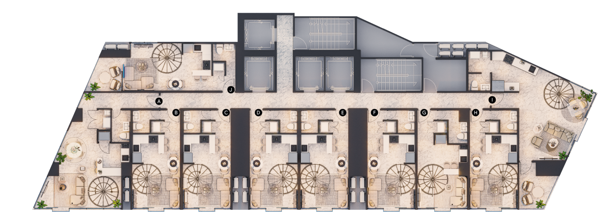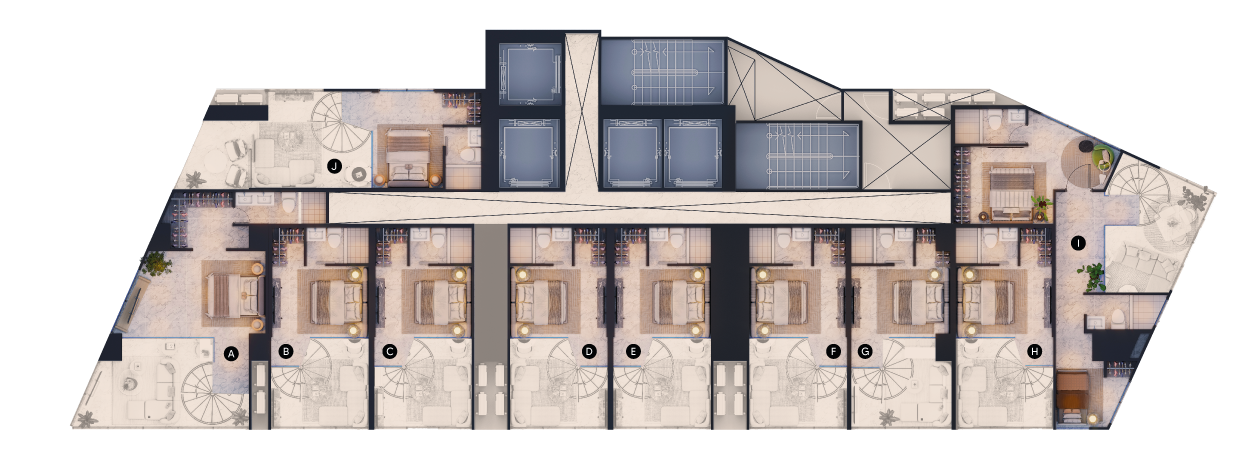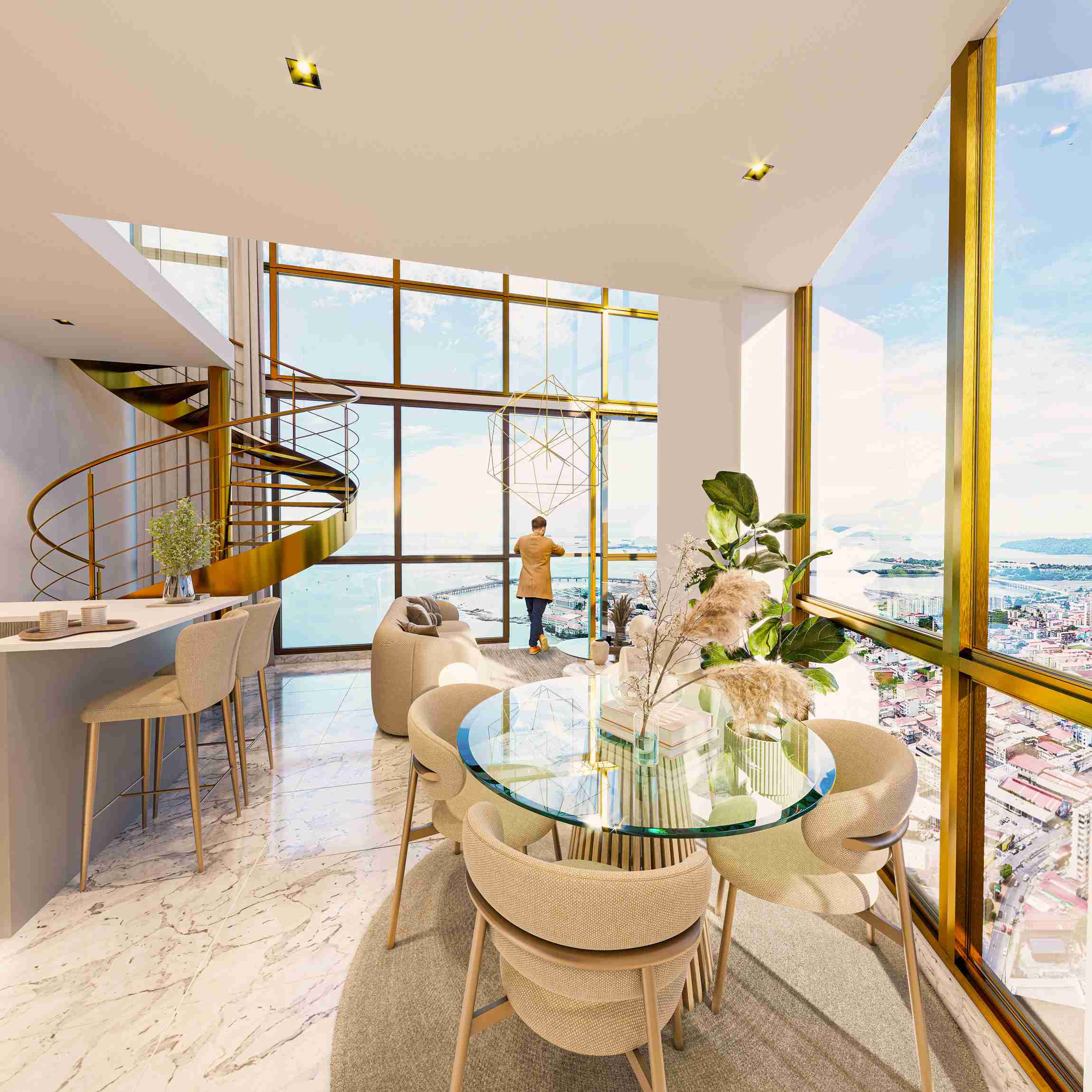 THE LABEL by LOFT ART está compuesto por exclusivos lofts de doble altura, pensados para ofrecer una experiencia de amplitud y libertad. Los grandes ventanales de piso a techo permiten que la luz natural bañe cada rincón, mientras los balcones franceses invitan a contemplar el vaivén del mar desde la intimidad del hogar. Cada espacio ha sido diseñado para capturar las vistas panorámicas del océano y transformar el horizonte en parte del estilo de vida.